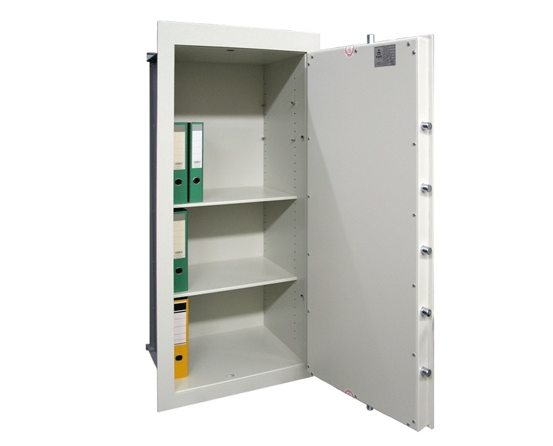 • Dvouplášťový stěnový trezor s ohnivzdorným lemem odolným proti slabému požáru (ohnivzdornost není certifikována).