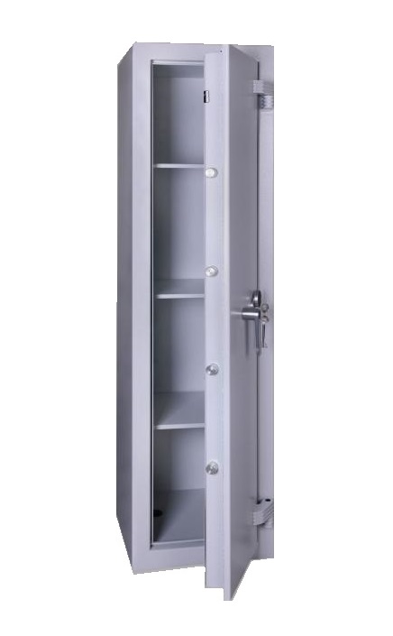 • Dvouplášťový skříňový trezor certifikovaný v I. bezpečnostní třídě s tloušťkou přední části dveří 8 mm (ocel).