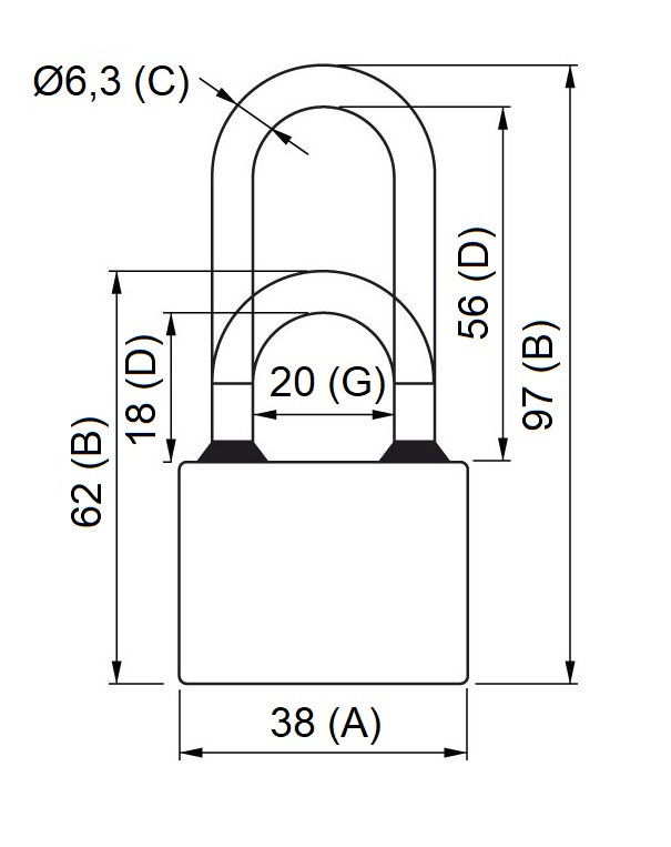 • Litinový visací zámek s gumovými kroužky chránící tělo proti průniku vody.