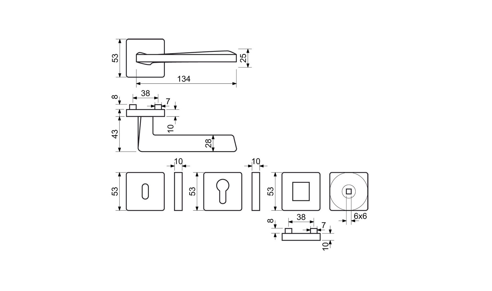 • Balení obsahuje spodní rozety, spojovací materiál, vrtací šablony, čtyřhran velikosti 6 x 6 mm a redukci 6/8 mm.